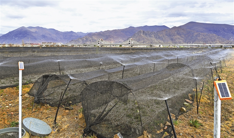 藏建物生鄉(xiāng)土苗木培育基地內的全自動灌溉設備。記者 次仁平措 攝
