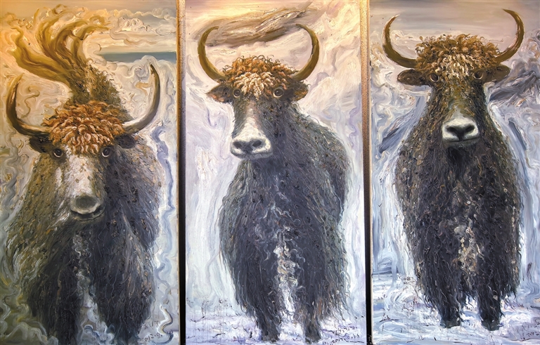 圖為油畫《牦?!方M圖。