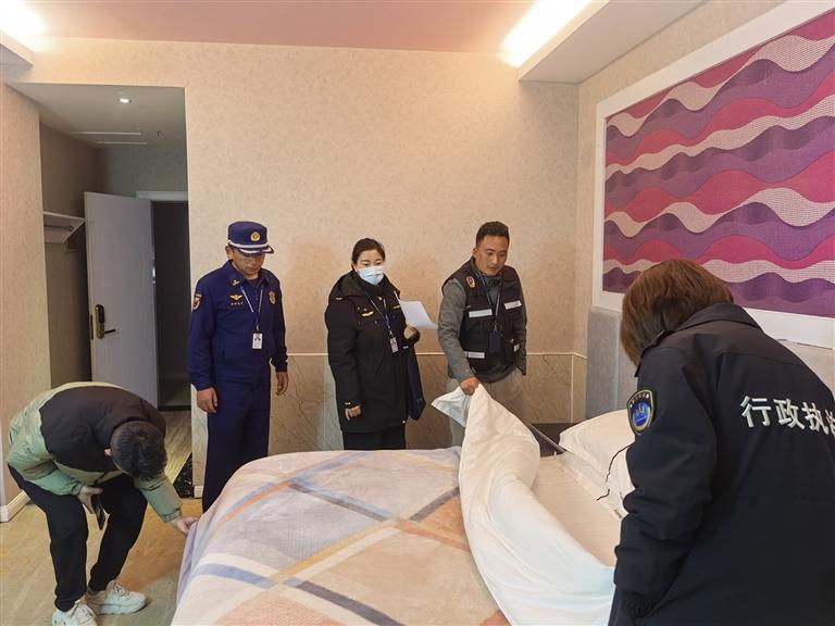 文旅部門對(duì)酒店進(jìn)行檢查。 圖片由自治區(qū)文旅廳執(zhí)法監(jiān)督處提供