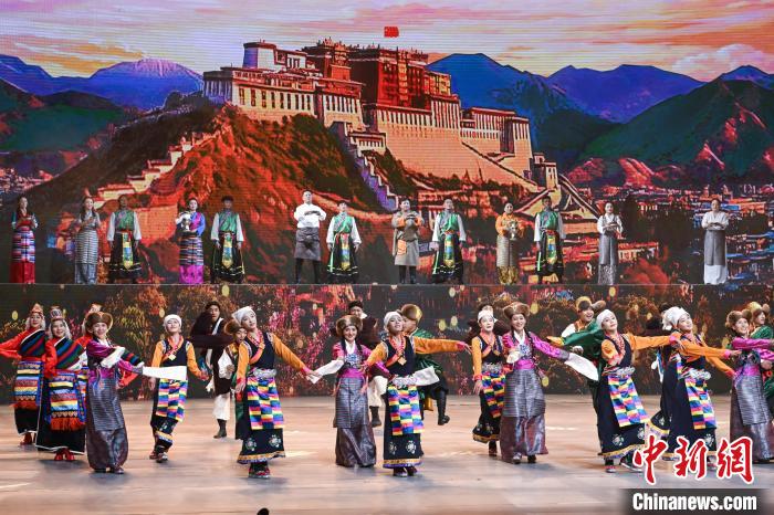 5月17日晚,2025年“雪域古城·圣地拉薩”文化旅游節(jié)“心約拉薩”專場文藝演出在西藏大劇院舉行。演出在《吉祥頌》中拉開序幕,隨后,次旦朗杰、次仁卓嘎等帶來歌曲《心約拉薩》。京劇與藏戲碰撞的《古韻新話贊拉薩》將現(xiàn)場氣氛推向高潮。當晚,《哎瑪嚯》《吉曲河畔》等節(jié)目輪番上演,為觀眾帶來了一場沉浸式視聽盛宴 ,讓大家在歌舞詩畫中感受拉薩的人文底蘊與時代活力。 中新社記者 貢嘎來松 攝