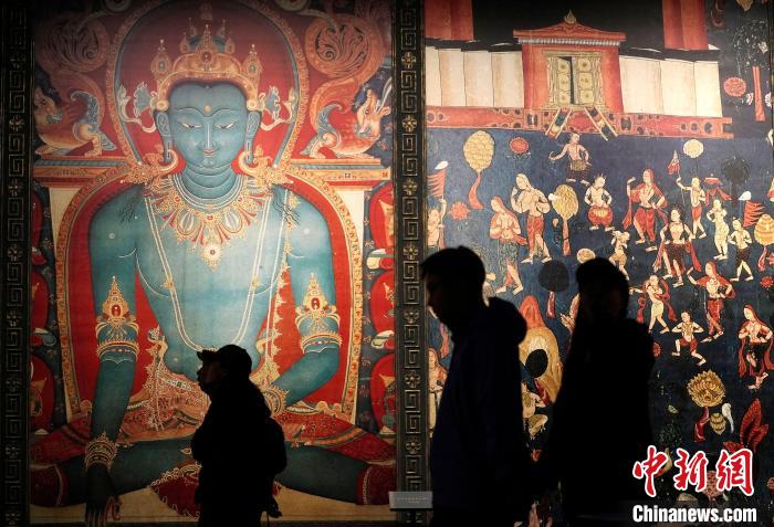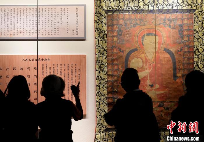 5月18日是第49個(gè)國(guó)際博物館日,今年的主題是“快速變化社會(huì)中的博物館未來(lái)”,西藏博物館迎來(lái)參觀熱潮。圖為觀眾正在欣賞展陳的八思巴肖像唐卡。中新社記者 李林 攝