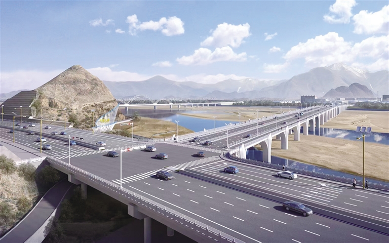 拉薩高新大橋效果圖。圖由新疆宏遠(yuǎn)建設(shè)集團(tuán)有限公司提供