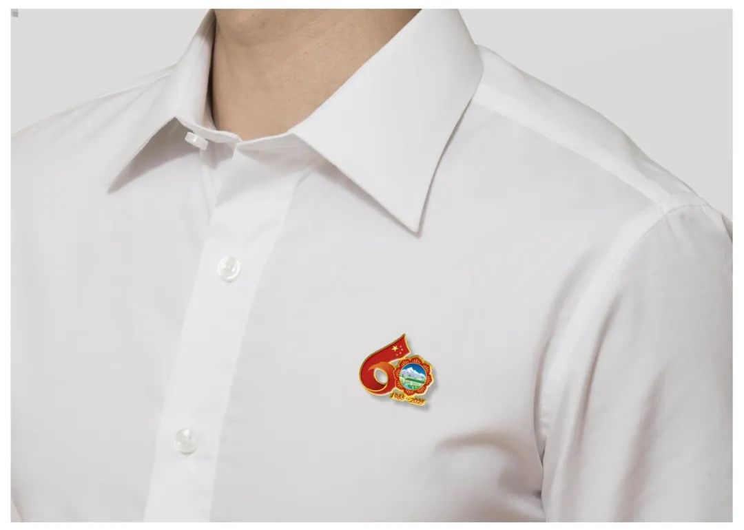 西藏自治區(qū)成立60周年慶?;顒?dòng)徽標(biāo)是由五星紅旗延展出的飄帶與格?;ò戥h(huán)構(gòu)成的數(shù)字“60”造型。飄揚(yáng)的五星紅旗象征著繁榮昌盛的祖國(guó)母親對(duì)西藏的關(guān)懷與呵護(hù),使西藏在砥礪奮進(jìn)的60年中綻放出燦爛的格?;ǘ?。西藏復(fù)興號(hào)、現(xiàn)代化新農(nóng)村、風(fēng)力發(fā)電、雪山、藏羚羊等代表了60年來(lái)西藏社會(huì)主義現(xiàn)代化建設(shè)取得的豐碩成果?!?965-2025”代表西藏自治區(qū)成立60周年。標(biāo)識(shí)兼具中華民族精神與西藏歷史底蘊(yùn),整體色彩使用了國(guó)旗紅,營(yíng)造出喜慶、熱烈、祥和的氛圍。