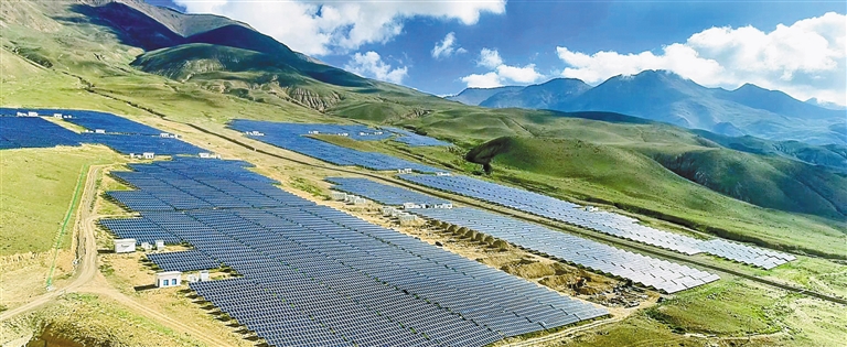 在措美縣城東、西兩側(cè)的山坡上,一排排光伏發(fā)電板在陽光的照射下熠熠生輝。措美縣全年日照強(qiáng)、降水少,年均日照時(shí)數(shù)超2800小時(shí),擁有豐富的太陽能資源。近年來,措美縣大力發(fā)展光伏發(fā)電產(chǎn)業(yè),實(shí)現(xiàn)綠色低碳發(fā)展,讓高原變身“綠電藍(lán)海”。截至目前,措美縣共建設(shè)有光伏電站3座,總裝機(jī)容量達(dá)到70MW。自2017年第一座光伏電站并網(wǎng)發(fā)電至2024年底,累計(jì)發(fā)電量超3.4億千瓦時(shí),相當(dāng)于節(jié)約標(biāo)準(zhǔn)煤約4.2萬噸,減少二氧化碳排放約33.9萬噸。