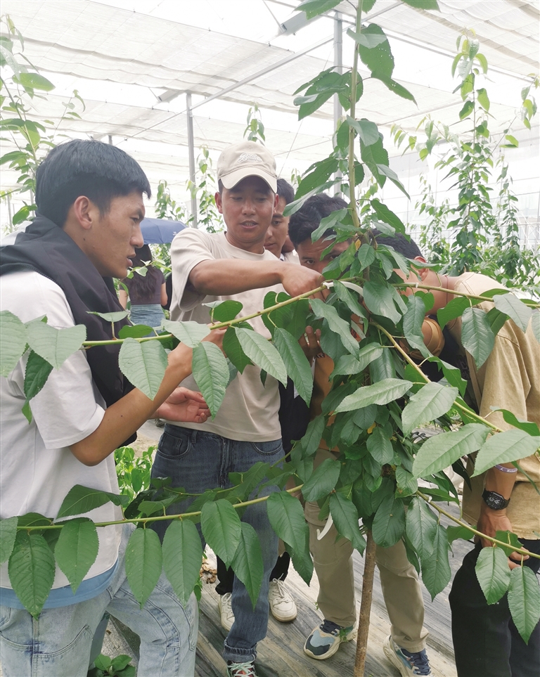 那段時(shí)間,他查閱了大量資料,進(jìn)行了多次實(shí)地調(diào)研,提出了引進(jìn)山東、陜西等地品質(zhì)高、產(chǎn)量好且抗病蟲害果樹的想法。他解釋道:“引進(jìn)這些品種,一方面可以大大降低病蟲害的風(fēng)險(xiǎn),提高產(chǎn)量和品質(zhì)。另一方面,通過研究水果本身的生長規(guī)律,選擇不同的品種進(jìn)行合理配置,能達(dá)到相互促進(jìn)的效果?!苯?jīng)過一段時(shí)間的試種,格桑群培的想法取得了顯著成效,得到了大家的高度贊譽(yù)。
