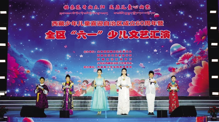 近日,“格?;ㄩ_向太陽·高原兒童心向黨”西藏少年兒童喜迎自治區(qū)成立60周年暨全區(qū)“六一”少兒文藝匯演在拉薩市群眾文化體育中心舉辦。來自西藏各市(地)小學(xué)和幼兒園的300名小演員以傳統(tǒng)藏戲、主旋律歌舞、詩朗誦、衛(wèi)國戍邊情景劇、拉薩與定日結(jié)對交友等形式,為全區(qū)各族少年兒童獻(xiàn)上一場充滿民族特色與時(shí)代氣息的文化盛宴。