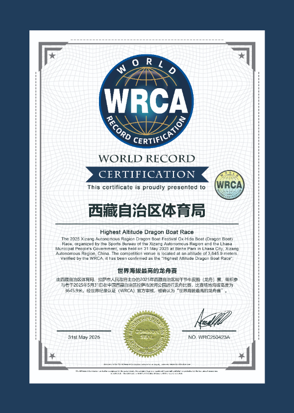 經(jīng)世界紀(jì)錄認(rèn)證機構(gòu)(WRCA)認(rèn)證為