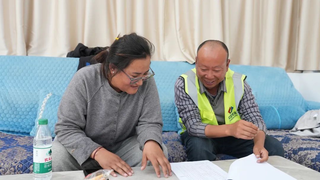 飯后,大家迅速投入工作,“拉巴家的房子地圈梁模板做完了嗎?”普布普尺邊詢問(wèn),邊認(rèn)真記錄。祝波耐心細(xì)致地介紹每一戶的施工情況。這個(gè)00后的小姑娘,在近幾個(gè)月與祝波的相處中,能力不斷提升,兩人在工作中配合默契,宛如老搭檔。