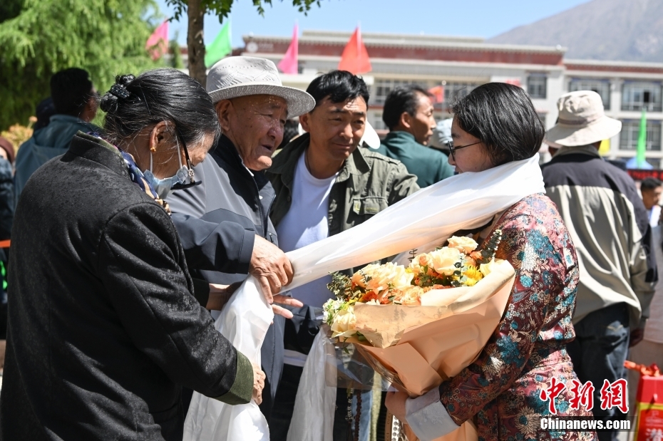 6月9日上午11時30分,西藏自治區(qū)2025年普通高考完成所有科目考試。圖為家長在拉薩市拉薩中學考點外為結(jié)束考試的孩子獻鮮花。中新社記者 李林 攝
