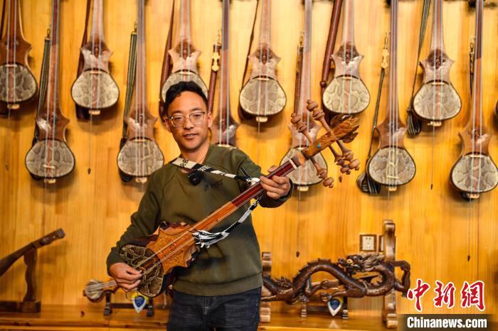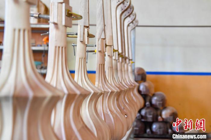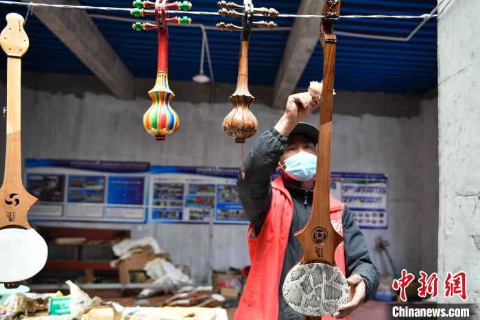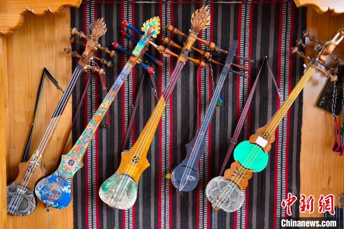 6月14日,記者走進西藏自治區(qū)日喀則市拉孜縣熱薩鄉(xiāng),探訪中國國家級非物質文化遺產“扎念琴制作技藝”的具體制作過程。扎念琴,又名六弦琴,是西藏傳統(tǒng)歌舞“堆諧”中最常用的彈撥樂器。扎念,藏語意為“悅耳動聽之聲”。在西藏,扎念琴深受廣大群眾喜愛。2014年,“扎念琴制作技藝”入選第四批中國國家級非物質文化遺產代表性項目名錄。據了解,扎念琴制作共有5道基本程序:第一步,將整根木材掏空,做成共鳴箱;第二步,制作中間空心的琴桿,裝上名為“卡杺”的面板;第三步,雕刻“馬頭”或“龍頭”形狀的琴頭,安裝在琴桿頂部;第四步,制作附在琴頭、呈半圓形、向后彎曲且中間開有弦槽的扎念弦軸。最后一步,挑選羊腸、牛筋、絲線等不同材料來制作琴弦。扎念琴制作技藝的特別之處在于,為了琴身的美觀,初制后還要通過雕刻馬頭、龍頭、火焰等形狀作為裝飾,讓扎念琴更具特色。圖為制作完成的扎念琴。貢確 攝