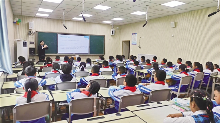本次活動以單課時科普課程為載體,聚焦“聲音是如何產(chǎn)生的”“聲音為什么會不同”“聲音是如何傳播的”“我們是如何聽到聲音的”四大核心問題,針對小學(xué)三至五年級學(xué)生不同的知識儲備,設(shè)計出“排簫音調(diào)實驗”“鼓膜振動模型”“八弦琴音色對比”“簡易擴(kuò)音器制作”“真空罩聲音衰減”5個生動有趣的科學(xué)實驗,分層實施教學(xué),激發(fā)了學(xué)生們探索科學(xué)的濃厚興趣。