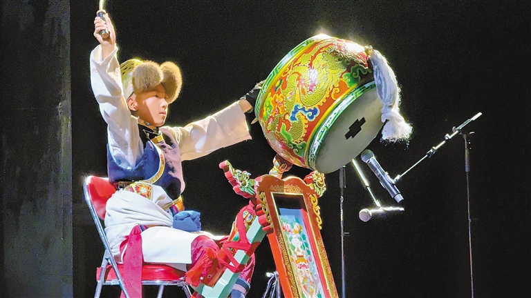 扎西多吉從小學(xué)一年級起便跟隨老師學(xué)藝,憑借扎實功底曾在“中國少兒戲曲小梅花薈萃”活動中獲得“小梅花”稱號?!八竟氖遣貞虻撵`魂節(jié)奏,每一次擊打都要帶著對傳統(tǒng)文化的敬意。”這位14歲少年的專注與執(zhí)著,不僅收獲了藝術(shù)成就,更錘煉出沉穩(wěn)大氣的品格。母親措姆欣慰地表示:“看著孩子在藏戲?qū)W習(xí)中成長,是最幸福的事?!?/p>