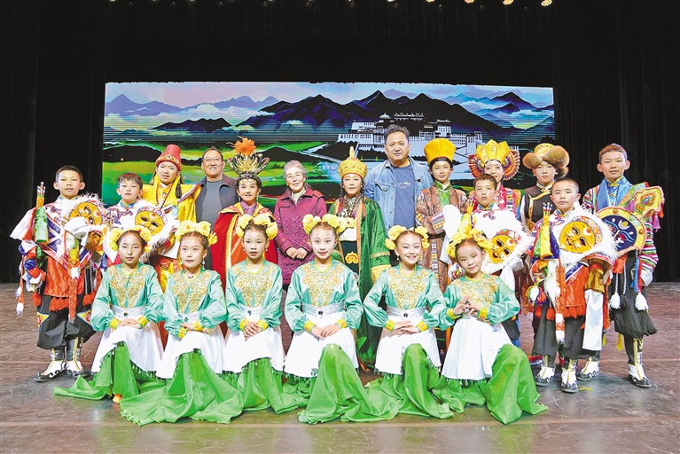 值此西藏自治區(qū)成立60周年、自治區(qū)群藝館(區(qū)非遺保護中心)“少兒藏戲(唱腔)”公益培訓(xùn)十周年之際,首部少兒版《文成公主》藏戲折子戲——《雪域童心頌文成》成功上演。17名平均年齡13歲的雪域少年,以赤誠之心重現(xiàn)漢藏和親歷史,讓人類非物質(zhì)文化遺產(chǎn)在新時代綻放璀璨光芒,奏響民族團結(jié)的時代強音。