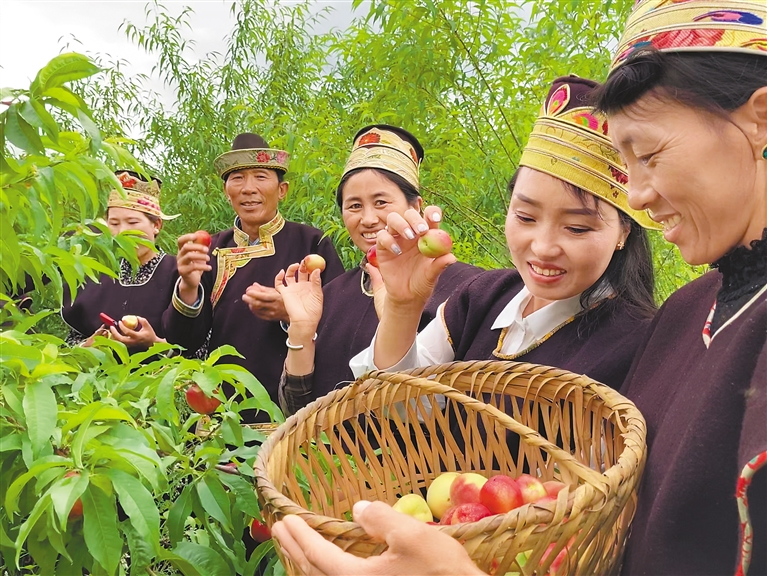 嘎拉村村民在采摘桃子。通訊員 黃海芬 攝