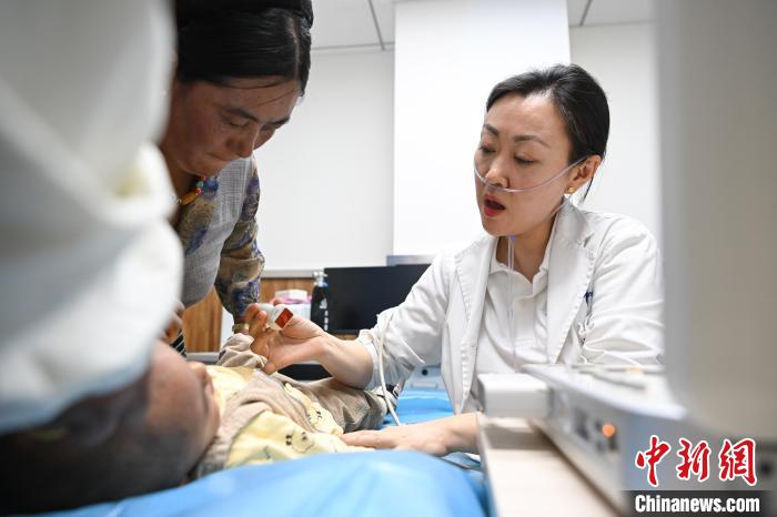 圖為醫(yī)療專家為患兒檢測(cè)血氧。 中新社記者 貢嘎來(lái)松 攝