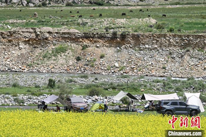 7月5日,西藏拉薩市風(fēng)和日麗,宜人周末里,市民紛紛前往近郊“過(guò)林卡”。在堆龍德慶區(qū)古榮鎮(zhèn)楚布溝,帳篷林立,歡聲笑語(yǔ)不斷。人們圍坐野餐,享受美食,伴著高原美景談天歌唱,孩童嬉戲奔跑,在自然中放松身心,延續(xù)傳統(tǒng)休閑樂(lè)趣 。圖為市民在楚布溝里“過(guò)林卡”。(無(wú)人機(jī)照片)中新社記者 貢嘎來(lái)松 攝