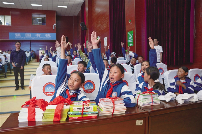 為慶祝中國共產(chǎn)黨成立104周年,迎接西藏自治區(qū)成立60周年,近日,自治區(qū)黨委宣傳部聯(lián)合自治區(qū)教育廳在達(dá)孜區(qū)中心小學(xué)開展“護(hù)苗2025·綠書簽”進(jìn)校園誦讀經(jīng)典活動。