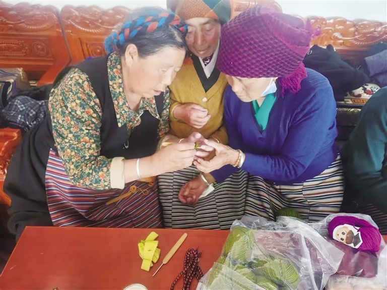 幸福院的老人正在進(jìn)行針織技藝交流。圖由拉薩市民政局提供