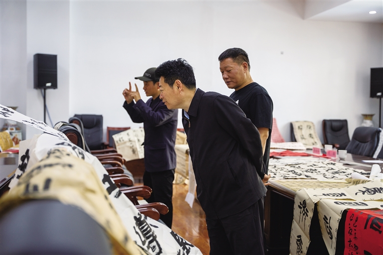 下午的漢文書(shū)法評(píng)選同樣精彩。兩百多幅參選作品,涵蓋楷書(shū)、行書(shū)、隸書(shū)、草書(shū)、篆書(shū)五種字體,風(fēng)格多樣,展現(xiàn)出扎實(shí)的書(shū)法功底和深厚的文化底蘊(yùn)。中國(guó)書(shū)協(xié)會(huì)員、西藏書(shū)協(xié)理事田中鶴認(rèn)真地審閱著每一幅作品,他感慨道:“活動(dòng)自啟動(dòng)便獲全國(guó)書(shū)法愛(ài)好者廣泛關(guān)注,參賽作品不僅數(shù)量可觀,質(zhì)量更值得肯定?!逼渲校坏泉?jiǎng)的楷書(shū)作品工整端莊,緊扣“民族團(tuán)結(jié)”主題,既彰顯書(shū)法藝術(shù)魅力,又傳遞出“高原紅石榴”象征的團(tuán)結(jié)奮進(jìn)精神,給評(píng)審團(tuán)留下深刻印象。