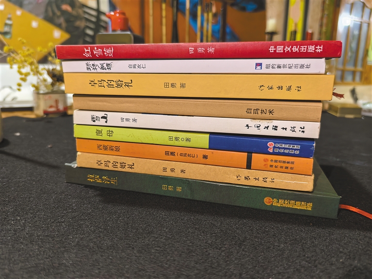 白瑪次仁的藝術(shù)疆域遼闊非凡。除《藏地悲歌》《田勇詩選》等詩歌集外,其長篇小說《雪山》《紅雪蓮》以史詩氣質(zhì)鐫刻高原魂魄,哲學(xué)集《小樹菩提》則展露思辨鋒芒。更令人驚嘆的是其跨界才華——繪畫與書法,雖未經(jīng)系統(tǒng)訓(xùn)練,卻自成一格。