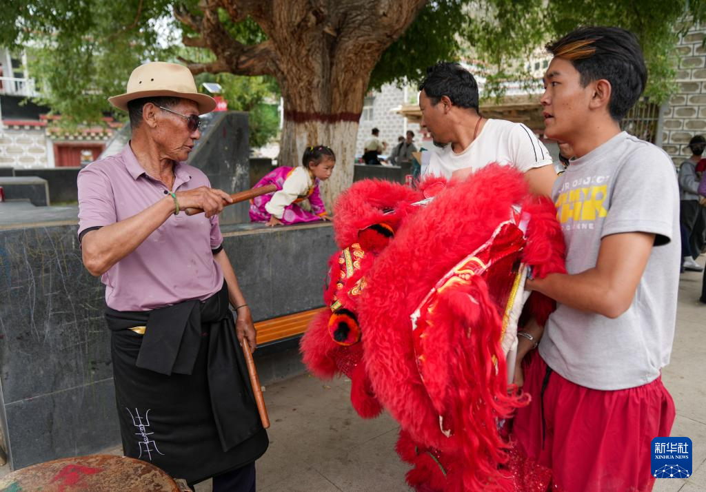 西藏昌都市洛隆縣曾是茶馬古道上的重要驛站,也是漢藏交往的重要通道。在洛隆縣碩督鎮(zhèn),當(dāng)?shù)匕傩諏岚臀?、鍋莊舞等西藏特色民族舞蹈元素融入早年傳入當(dāng)?shù)氐奈瑾{中,形成一種兼具漢藏特色的表演形式——碩督獅子舞。2024年,碩督獅子舞被列入西藏自治區(qū)非物質(zhì)文化遺產(chǎn)名錄。