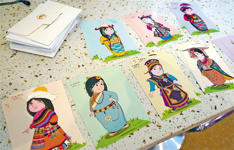 目前,藏博郵禮郵政服務(wù)點已向公眾免費提供13枚主題印章的集章服務(wù)。其中,鎮(zhèn)館之寶章以昌都卡若遺址出土的雙體陶罐為原型,將新石器時代的歷史厚重凝練于方寸之間;格?;ㄅc張大人花章則以高原特色花卉為媒,定格雪域的生態(tài)之美;而博物館原創(chuàng)卡通形象“寧吉姆啦”的萌趣造型,更以年輕化表達拉近了公眾與文化遺產(chǎn)的距離。此外,還特別提供了手寫藏文祝福服務(wù)——工作人員日均書寫40至70張、旺季單日超百張的藏文版“扎西德勒”,這不僅承載著語言藝術(shù)的魅力,更以筆尖的溫度將人文關(guān)懷鐫刻成游客珍藏的“文化信物”。