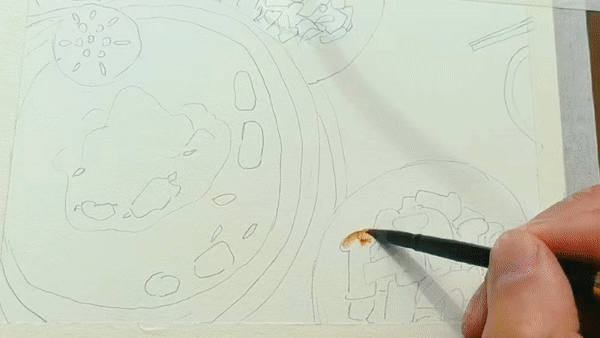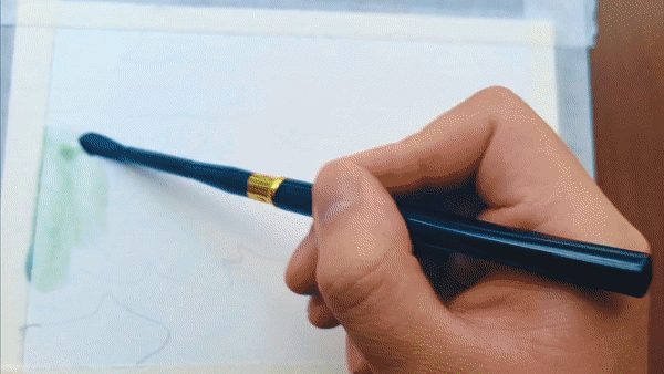 展開(kāi)畫紙,最先捕捉到的是夏日魯朗層次豐富的綠意:嫩綠的草地鋪展開(kāi)來(lái),湖水映出清澈的藍(lán)綠色澤,遠(yuǎn)處的山巒泛著淡淡青色,層層疊疊。道路在明媚的陽(yáng)光下,潔白如雪,在綠色中蜿蜒,串聯(lián)起一個(gè)個(gè)藏式村落。