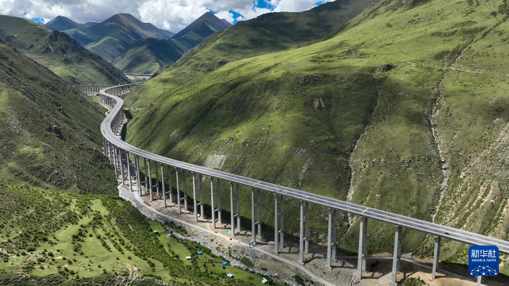 拉薩至日喀則的高等級公路(無人機照片,2024年9月11日攝)。新華社記者 晉美多吉 攝