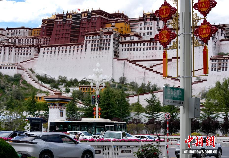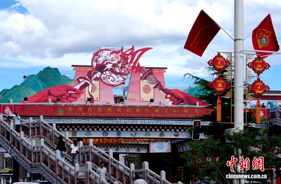 8月19日,隨著西藏自治區(qū)成立60周年慶祝活動(dòng)臨近,拉薩氛圍濃。拉薩街頭,處處是張燈結(jié)彩的盛景,洋溢著一派祥和與歡騰的氛圍。圖為拉薩裝扮一新的街頭。中新社記者 李林 攝