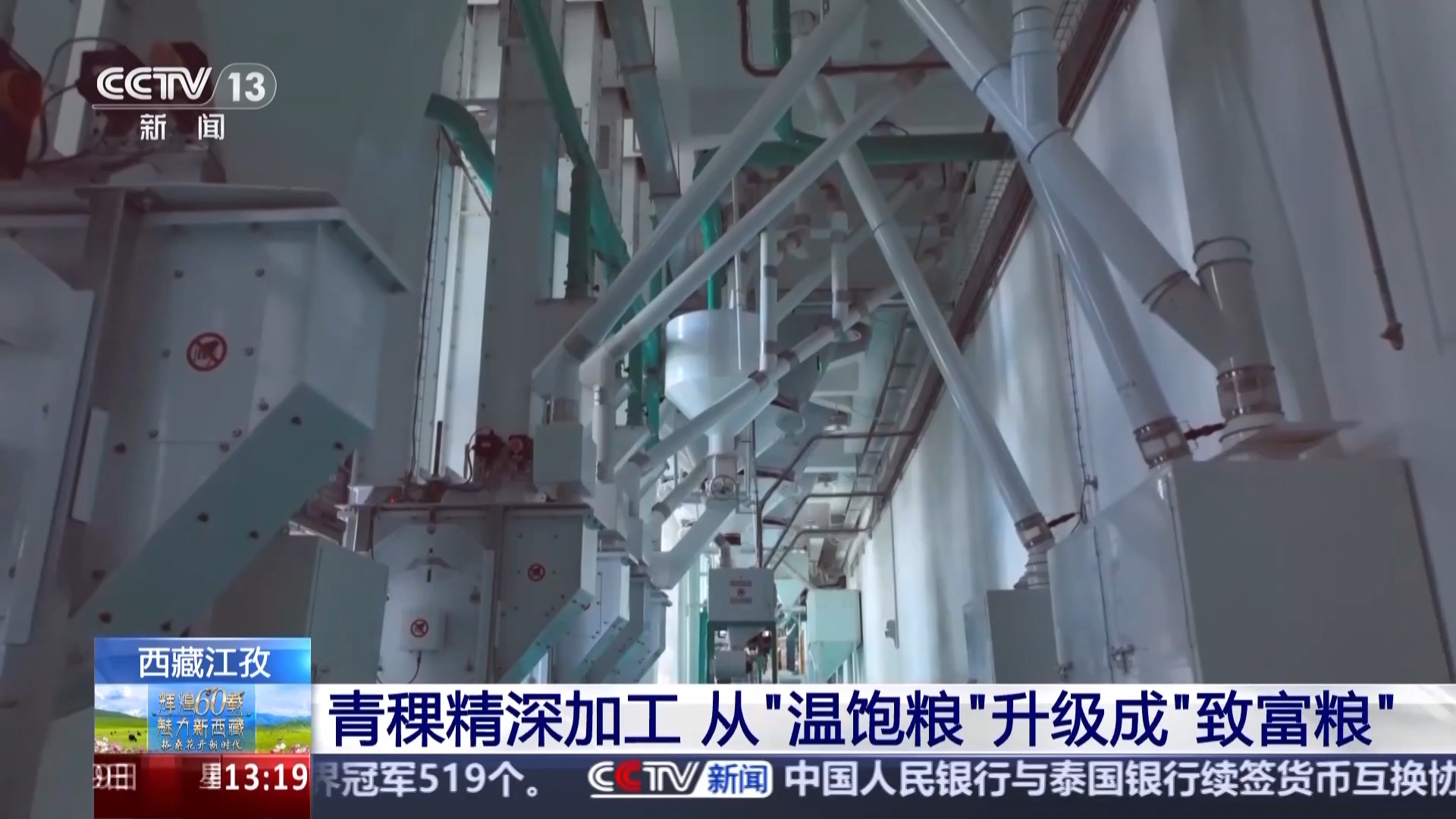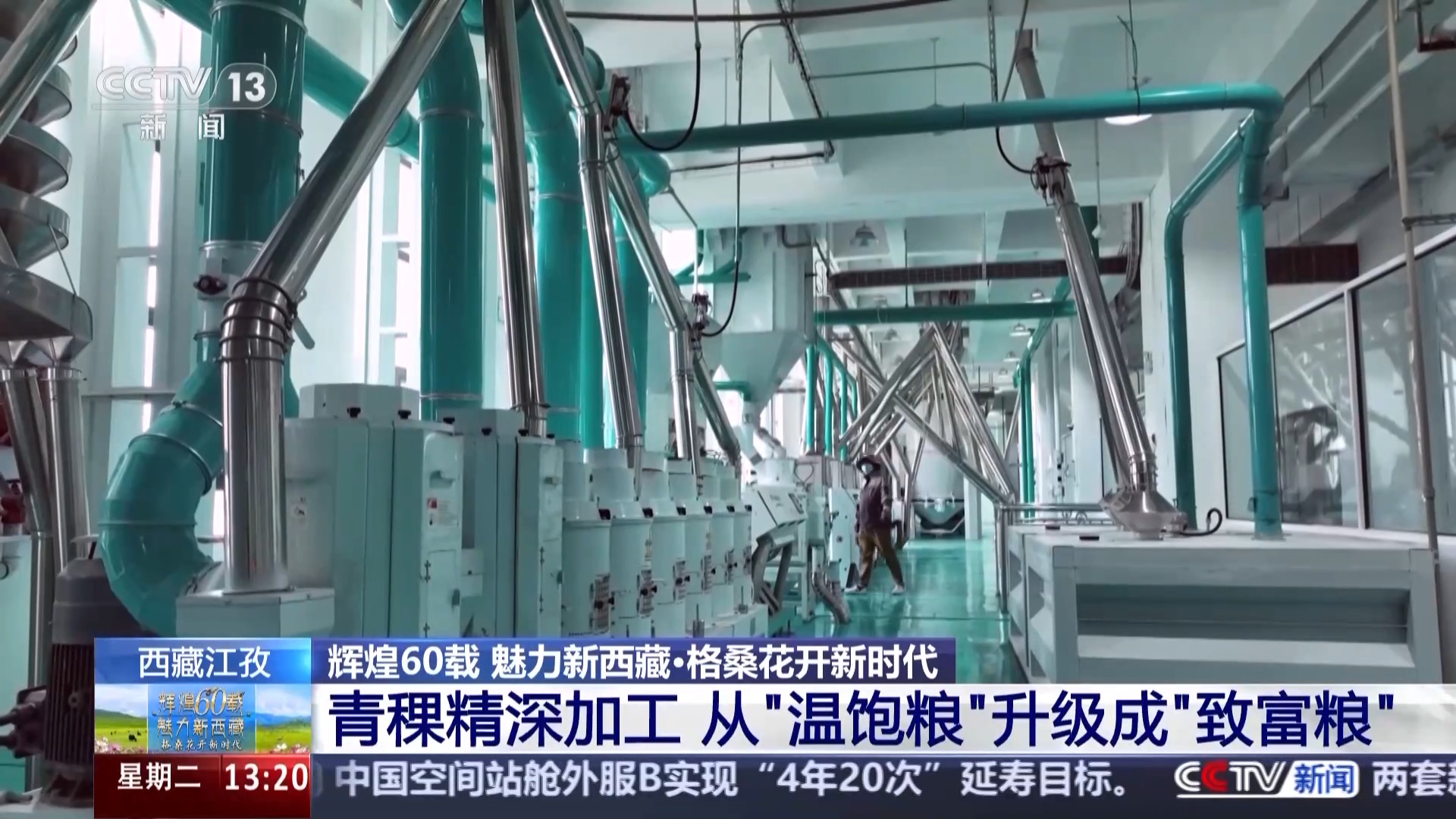 總臺記者 于晨:我現(xiàn)在是在江孜縣的一家專注于青稞產(chǎn)品研發(fā)的科技公司,去年9月,全國首條青稞谷物專用生產(chǎn)線在這里落地,填補(bǔ)了行業(yè)的空白,這讓青稞的得粉率由原來的60%以下提升至了70%以上。