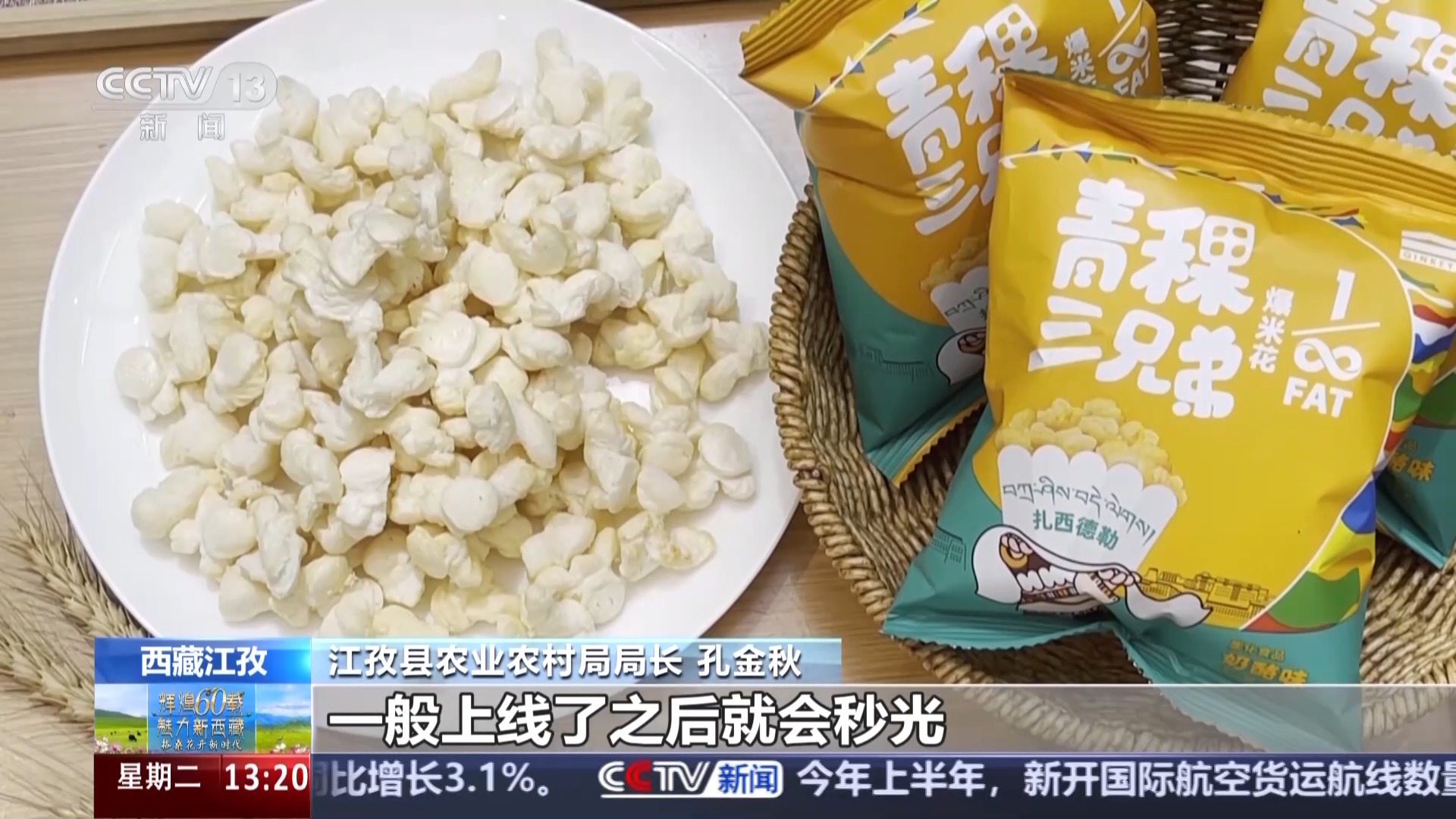 江孜縣農(nóng)業(yè)農(nóng)村局局長 孔金秋:像這個青稞爆米花,麻森這些產(chǎn)品在線上都非常受歡迎,一般上線了之后就會秒光,我們現(xiàn)在通過企業(yè)加合作社加農(nóng)戶的這種發(fā)展模式,已經(jīng)實現(xiàn)了青稞原料訂單7000噸,預(yù)計今年能夠?qū)崿F(xiàn)1.5萬噸,青稞深加工產(chǎn)業(yè)的這個總產(chǎn)值預(yù)計突破1.7億元,同比增長21%。