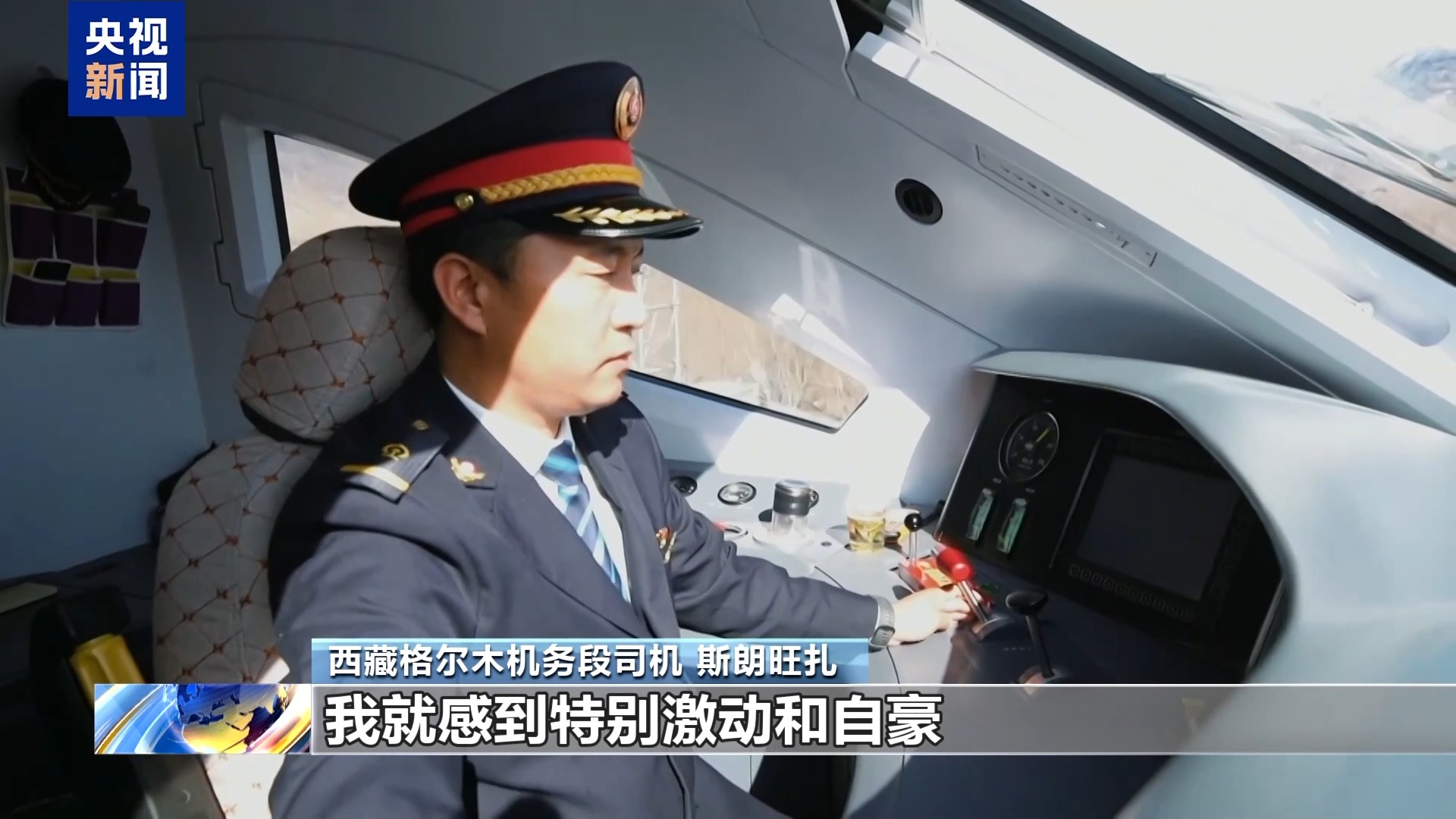 西藏格爾木機務(wù)段司機 斯朗旺扎:能夠在新線開通上擔(dān)當(dāng)一個首發(fā)列車的執(zhí)乘司機,我感到特別激動和自豪。復(fù)興號結(jié)束了西藏東南地區(qū)沒有鐵路的歷史,建設(shè)者們非常辛苦,發(fā)自內(nèi)心地對他們點贊。