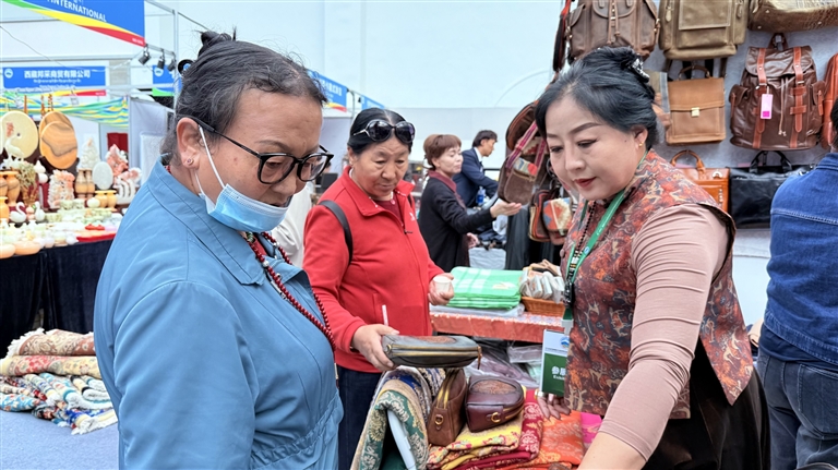 展會(huì)現(xiàn)場(chǎng)人頭攢動(dòng),熱鬧非凡。150家參展商帶來的特色產(chǎn)品鋪滿了各個(gè)展位,空氣中彌漫著多元?dú)庀ⅰ7▏t酒的醇厚酒香、印度尼西亞咖啡的濃郁焦香、伊朗藏紅花的獨(dú)特芬芳交織在一起,與西藏本土青稞制品的麥香、高原蜂蜜的甜香相互映襯。在巴基斯坦展位前,參展商Asif正熱情地向顧客展示手工羊毛地毯,“我已經(jīng)連續(xù)三年參加,之前銷量都很好,這次帶來的地毯紋樣融入了藏式元素,希望能更受歡迎?!?/p>