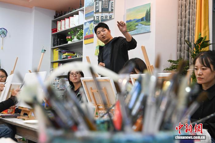 9月1日,2025年西藏自治區(qū)拉薩市第二期“青年夜?!闭介_班。圖為夜校學員在上美術課。中新社記者 貢嘎來松 攝