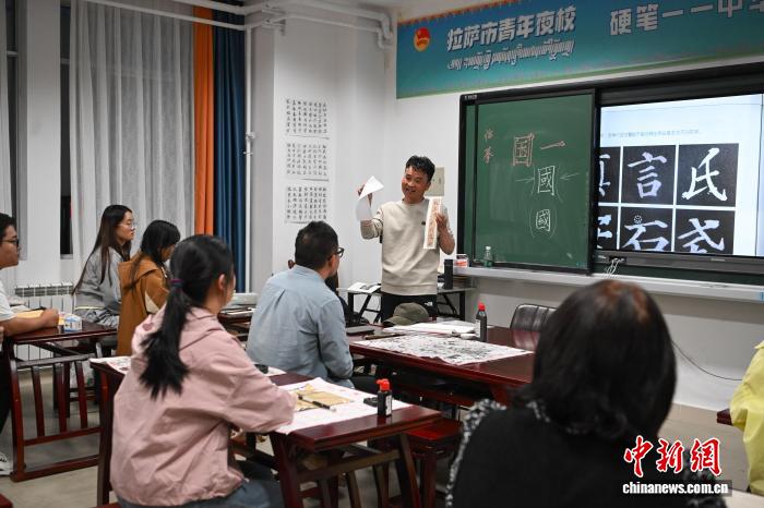 9月1日,2025年西藏自治區(qū)拉薩市第二期“青年夜校”正式開班。圖為夜校學員在上書法課。中新社記者 貢嘎來松 攝