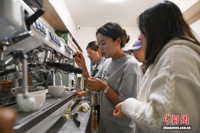 9月1日,2025年西藏自治區(qū)拉薩市第二期“青年夜?!闭介_班。圖為夜校學員在上咖啡制作課。中新社記者 貢嘎來松 攝