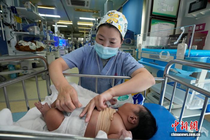 9月5日,西藏阜康醫(yī)院新生兒科內(nèi),護士正在安撫新生兒。西藏自治區(qū)成立60周年西藏婦女兒童事業(yè)發(fā)展情況發(fā)布會5日在拉薩召開。發(fā)布會介紹,西藏孕產(chǎn)婦死亡率、嬰兒死亡率分別降至34.94/10萬、4.32‰,60年來,西藏婦女兒童衛(wèi)生健康水平顯著提高。中新社記者 李林 攝