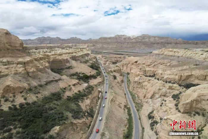 圖為9月2日,參加“天上阿里·云巔自駕”活動(dòng)的游客車隊(duì)行駛在札達(dá)縣土林景區(qū)(無(wú)人機(jī)照片)。閆志國(guó) 攝