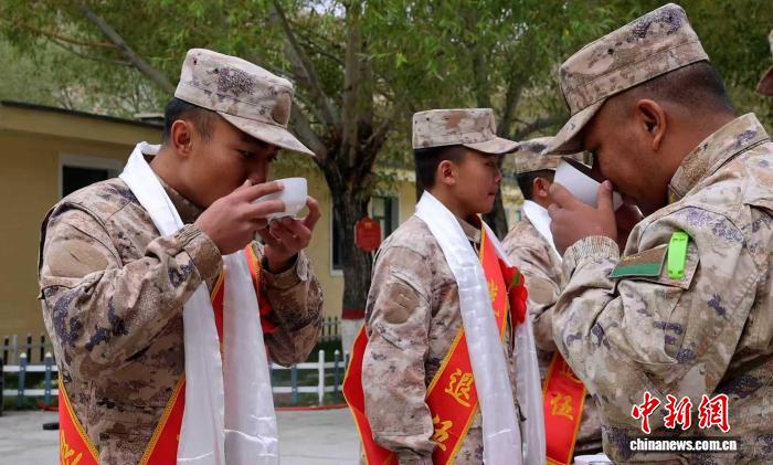 西藏阿里軍分區(qū)某邊防團什布奇邊防連9月4日為十余名服役期滿退役的老兵舉行歡送儀式。