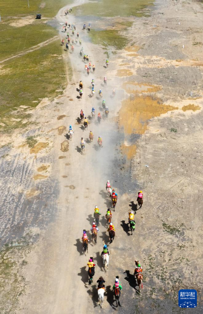 9月7日,騎手們?cè)趥鹘y(tǒng)大跑項(xiàng)目中馳騁(無人機(jī)照片)。新華社記者 丁增尼達(dá) 攝