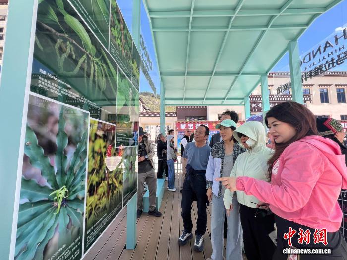 9月5日下午,參與項目啟動的部分專家學(xué)者和媒體代表,參觀林芝市生物多樣性科普宣傳微展覽。潘旭臨 攝