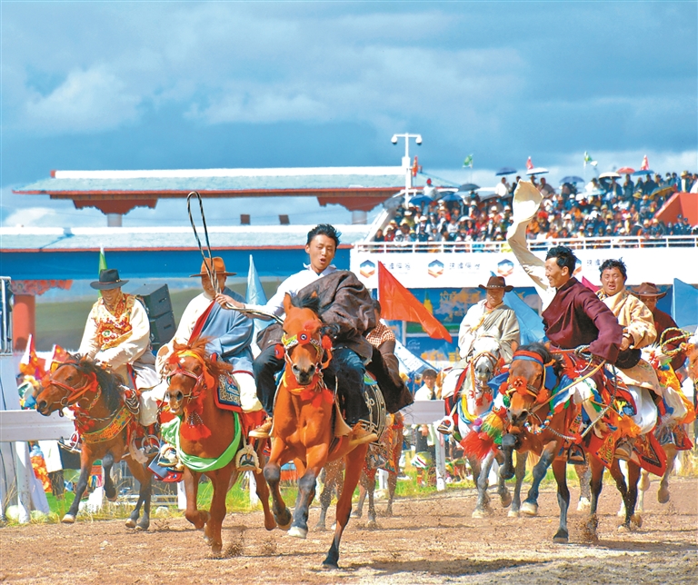 格薩爾賽馬場上,人群依然歡騰,掌聲、喝彩聲此起彼伏。馬蹄聲碎,揚(yáng)起歲月的塵煙與時代的新輝;長調(diào)悠遠(yuǎn),掠過蒼茫的草場與無垠的晴空。人們以賽馬為媒,以歌舞為言,在這片高原相遇、相擁,傳遞著來自遠(yuǎn)古的熱情與今日的豪邁。這一刻,羌塘不再遙遠(yuǎn),傳統(tǒng)從未老去,夢想生生不息。