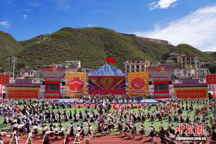 圖為開幕式上的文藝演出。貢確 攝