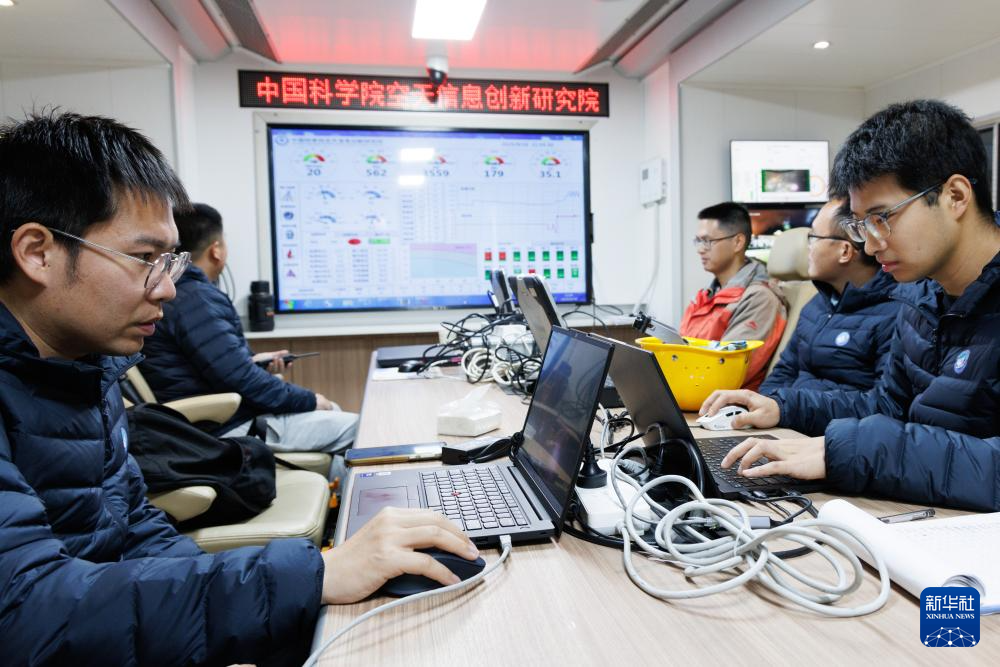 9月18日,“極目一號”浮空艇大氣觀測試驗現(xiàn)場控制室,科研人員在觀察試驗進展。新華社記者 金立旺 攝