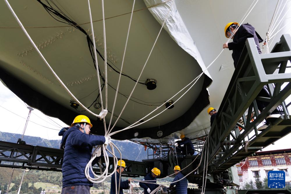 9月18日,“極目一號”浮空艇大氣觀測試驗現(xiàn)場,科研人員在操作輔助系索。新華社記者 金立旺 攝