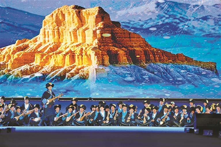 開幕式通過“線上直播+現(xiàn)場觀演”模式,為現(xiàn)場各界來賓、干部群眾及線上觀眾,呈現(xiàn)了一場內(nèi)容豐富、形式多元、內(nèi)涵深刻的視聽盛宴。此次演出時(shí)長約80分鐘,投入演職人員300余人次,共呈現(xiàn)13個(gè)特色節(jié)目。演出以弘揚(yáng)優(yōu)秀傳統(tǒng)文化和鑄牢中華民族共同體意識(shí)為基調(diào),大膽革新藝術(shù)表達(dá)形式,將“音、舞、詩、畫”巧妙融合,并鑲嵌濃郁的阿里地域文化元素,通過多元文化交融的舞臺(tái)敘事,生動(dòng)詮釋中華民族“多元一體、和諧共生”的深刻內(nèi)涵,實(shí)現(xiàn)歷史與人文的激情碰撞。