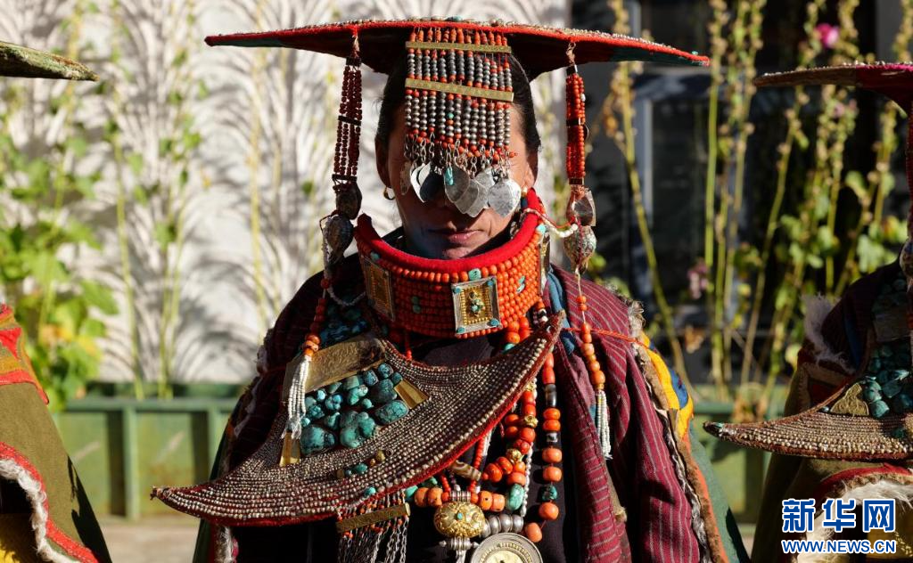 圖為普蘭服飾頭飾(9月23日攝)。新華網(wǎng) 柑丹鴦琦 攝