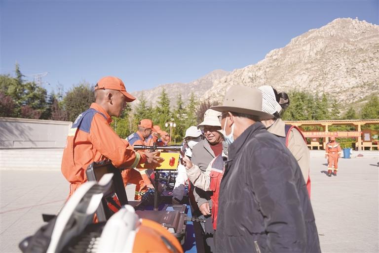 在資料發(fā)放環(huán)節(jié),大隊宣傳員向過往群眾遞發(fā)《森林防火條例》摘要手冊及防災(zāi)減災(zāi)科普折頁等宣傳資料200余份,確保防災(zāi)政策、防火常識“廣覆蓋、無遺漏”;案例講解環(huán)節(jié),宣傳人員結(jié)合周邊近年防災(zāi)減災(zāi)典型案例與森林火災(zāi)真實事件,用藏漢雙語解讀違規(guī)用火、災(zāi)害應(yīng)對不當(dāng)?shù)膰?yán)重后果,明確違反相關(guān)規(guī)定的法律責(zé)任,讓群眾直觀感受到防災(zāi)減災(zāi)與防火的緊迫性;裝備展示區(qū),專業(yè)救援車輛、滅火器材及救援裝備逐一陳列,大隊宣傳員細致講解各類裝備的用途與操作原理,既充分展現(xiàn)應(yīng)急救援實力,也有效加深群眾對防災(zāi)減災(zāi)、防火救援工作的認(rèn)知;有獎問答與答疑環(huán)節(jié),通過趣味互動充分激發(fā)群眾參與熱情,針對家庭用火安全、日常防災(zāi)避險、林區(qū)作業(yè)防火等常見疑問,宣傳員耐心解答、細致指導(dǎo),做到“有問必答、解惑到位”。