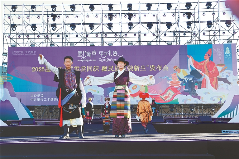 模特在2025墨竹工卡“霓裳同織·藏民族服裝新生”發(fā)布會(huì)上展示墨竹服飾。