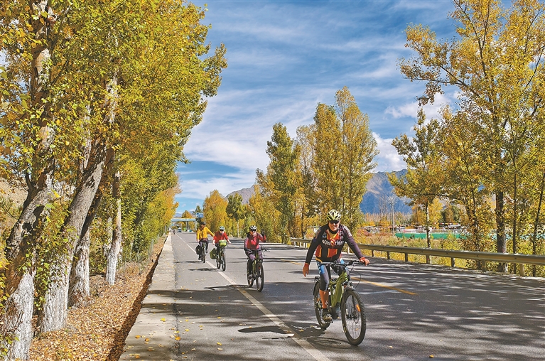 走出城區(qū),曲水縣與墨竹工卡縣的田園秋色漸次展開,大地流金。蜿蜒的公路間偶有自行車隊(duì)穿行,人影掠過,為寧靜的秋日注入躍動(dòng)的氣息。